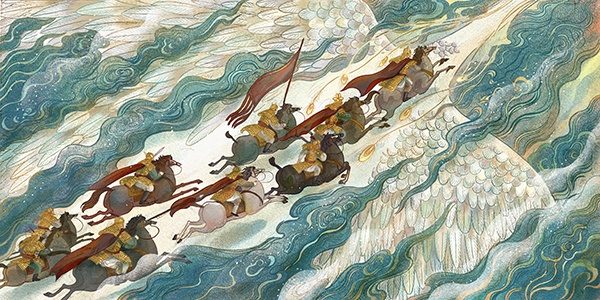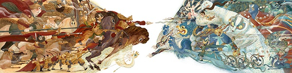 再谈谈战争,北朝时期政权更迭,北方各族与中原战乱不断。木兰奔赴战场,敌人应是“五胡”的匈奴等游牧民族。我个人在创作上会参阅很多资料,但又不喜欢完全中规中矩地按照史实去创作。于是,我的“匈奴”也就有了不同寻常的样子。