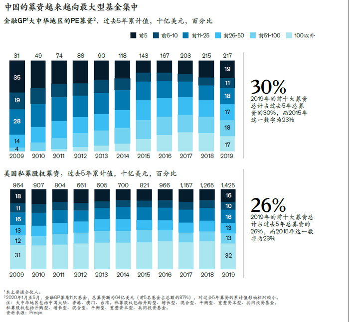 随着过往业绩透明度提升,加之LP更倾向与数量有限的几家基金合作,这些因素推动募资越来越向少数几家基金集中。