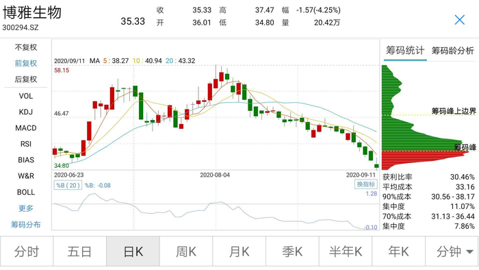 受公开信等消息的影响,博雅生物周五低开逾2%,最终当日收跌4.25%,报35.33元/股。公司股价本月已下跌超20%,自8月4日的高点58.15元已大幅下跌近40%。
