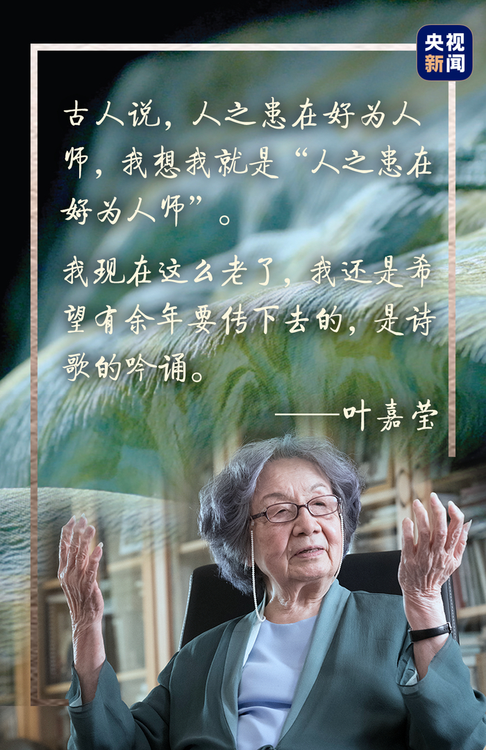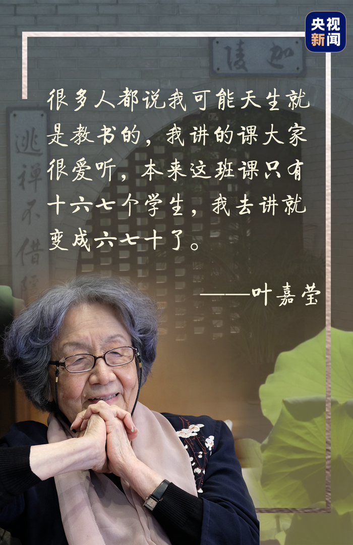 教书,是伴随叶嘉莹一生的事业;老师,是她一生中最重要的身份,她自己也说:“古人说‘人之患,在好为人师’,我觉得我就是。”