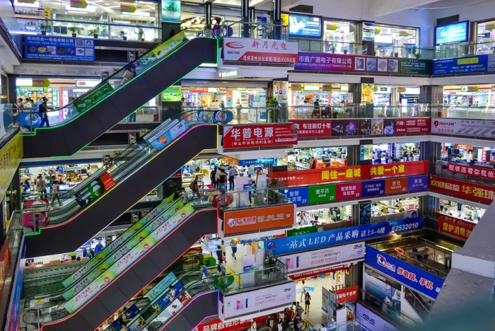 华灯初上,深圳华强北依旧热闹,尤其是明通化妆品市场周围车水马龙,大包小包进进出出的人们,川流不息。