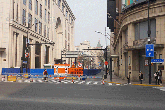 从车水马龙的街道到可以闲庭信步的步行街,南京路步行街改造中“金带”的设计突出了以“人的活动”为根本的设计指导思想。“金带”位于道路中心线偏北1.3m处,处于阳光的照射面,清晰地标志了步行街的休憩空间,反映出步行街的静态特征。而两侧步行区平坦开阔,无任何障碍物,直接通向商店,则凸显了步行街的动态特征。这样的设计,既能保证购物者和观光者在街道穿梭流动的畅通无阻,也为行人驻足休憩、享用服务设施辟出一片静谧的、富有人情味的城市空间。