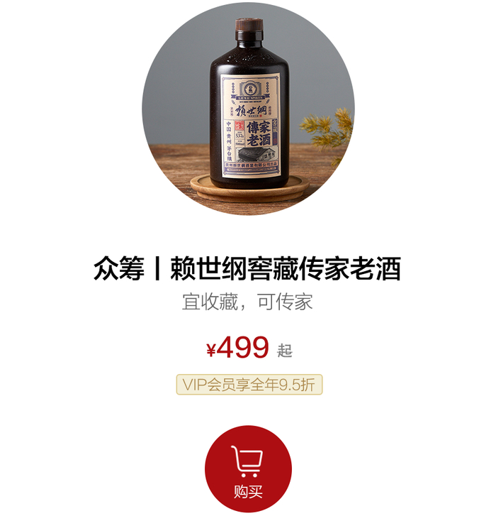 支持499元,可获得13年陈酱香型传家老茅酒1瓶,价值899元。