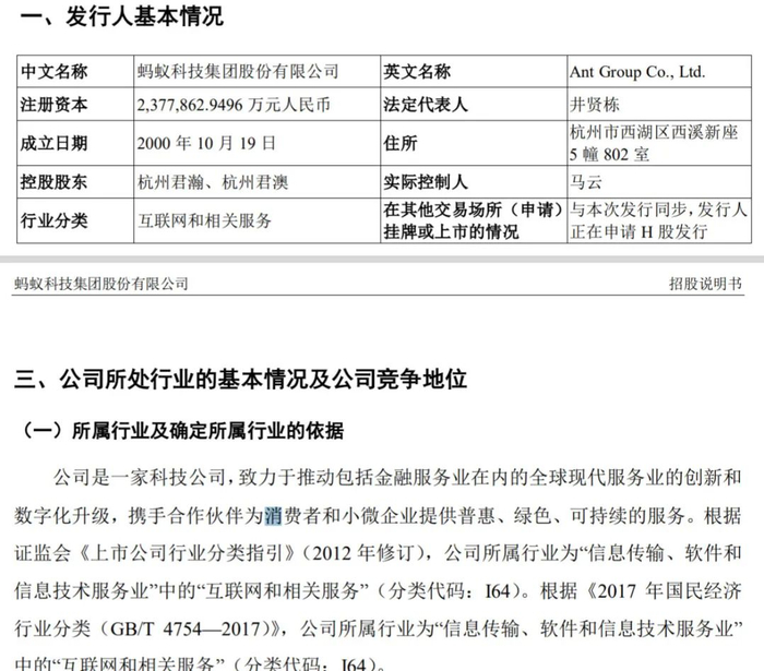 按照证监会公布的《上市公司行业分类指引(2012年修订)》,蚂蚁集团归属互联网和相关服务业。