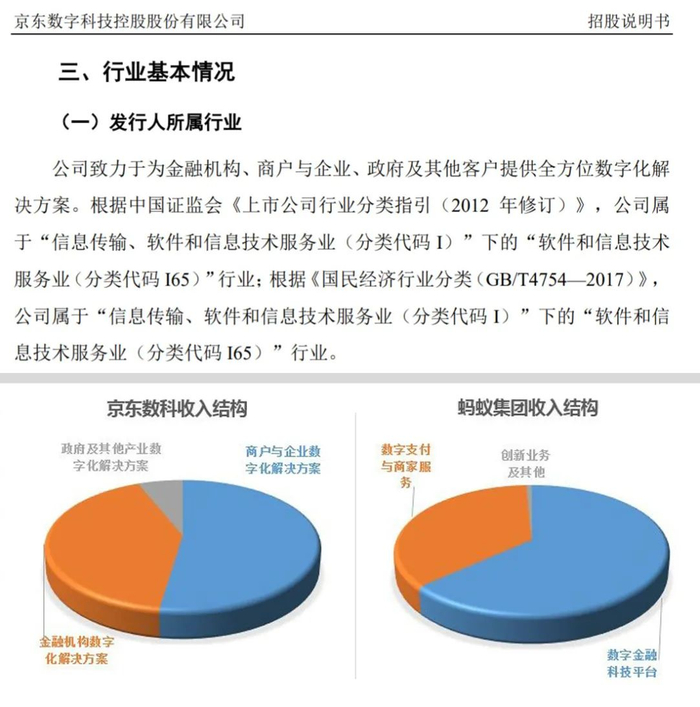 而且,双方均认为,自己在行业内无可比公司。京东数科也在招股书申报稿中称:尽管公司认为目前在中国以及全球范围内并不存在与公司全面直接竞争的企业,但在产业数字化的发展浪潮中,公司仍将面临激烈竞争。公司需要在科技能力、行业洞察和生态场景三方面保持竞争力。