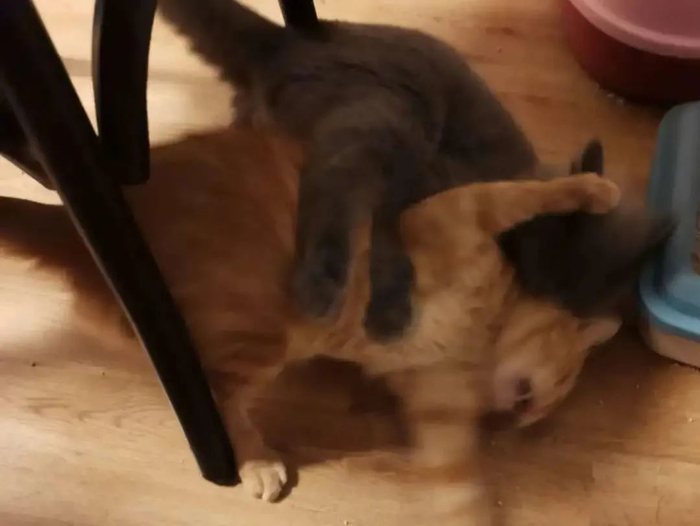 后来一调监控发现,果然是家里出了内贼。我当时租的房子带着一个露台,经常有野猫在那儿乱窜,这几只就是其中一窝。看监控发现,当天下雨的时候,我们家猫把屋里的窗户给打开了。窗子是带弹簧线的,猫一摁就开了,我家猫就“招呼”着它的几个朋友进屋了。这群猫在屋里把食全吃了,水也喝了,还在床底下友好地玩耍,万幸的是没有上床。