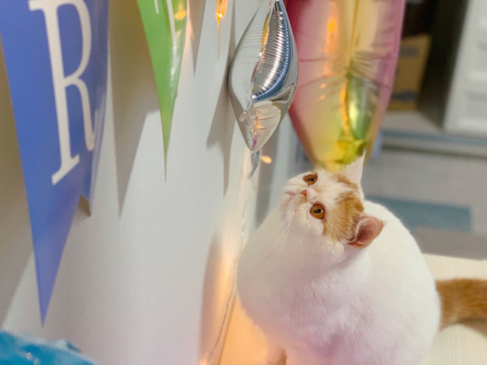 今年4月,是它一周岁生日,我还在网上专门买了彩灯、气球,为它准备了蛋糕。希望它能一直健康快乐。它是我的小天使,真的就像我的孩子一样。