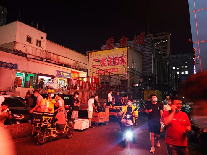 华灯初上,深圳华强北依旧热闹,尤其是明通化妆品市场周围车水马龙,大包小包进进出出的人们,川流不息。