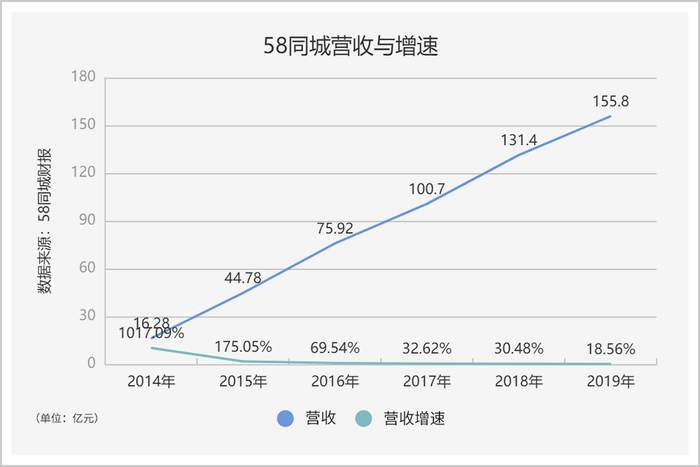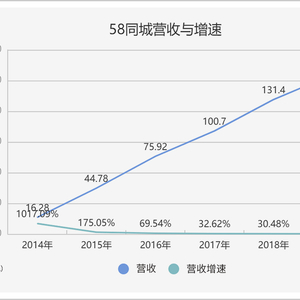 遗憾的是,上市后的58同城并没有像阿里一样迎来自己的春天,反而在增速上开始了下坡路。