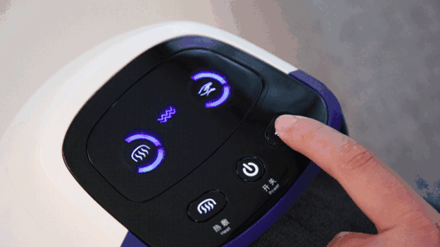 这款按摩仪操作屏上只有3个键位:开关、温度、按摩,设计的简约大气,接地气。