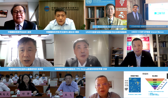 在此背景下,联合国工业发展组织投资和技术促进办公室(中国·北京,UNIDO ITPO Beijing)与中国国际经济技术交流中心、中国国际贸易学会于2020年9月5日下午共同举办了中国国际服务贸易交易会“第四次工业革命与区域产业链合作”线上研讨会,聚焦第四次工业革命带来的新经济、新基建、数字化转型和投资贸易新趋势、新理念等前沿话题。会议邀请了国际组织、中国地方政府和产业园区代表、国内外知名智库和企业专家展开交流与对话,多维度为中国投资贸易与服务业相结合(IPaaS)推动包容性可持续工业发展(ISID)进言献策。