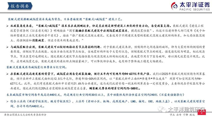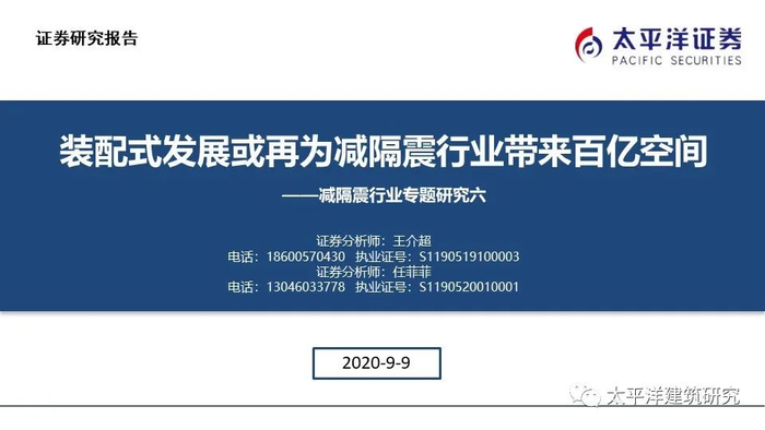 【太平洋建筑】减隔震专题六:装配式发展或再为减隔震行业带来百亿空间