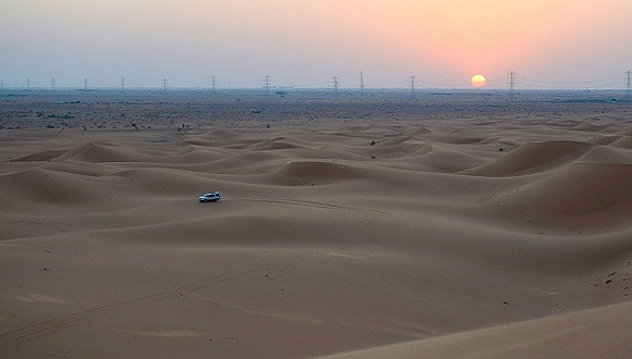 2020年8月29日,沙特阿拉伯,一辆吉普车驶过利雅得市东部110公里的Saed沙漠地区。图片来源:人民视觉