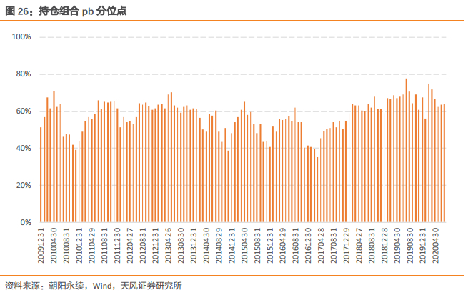 持仓组合的估值暴露如下所示,持仓组合在全市场股票的估值(市净率,pb)分位点(估值越高,分位点越大)长期分布在50%分位数附近,整体而言策略偏向于选择市场平均水平估值的股票。