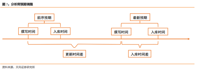 如下图所示,对于每次分析师预期调整,其涉及到前序预期以及最新预期两份预测数据,根据数据所属报告的撰写时间与入库时间,我们定义: