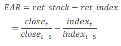 其中 、 分别是股票及其对应行业指数在报告披露日t的收盘价, 、 分别是二者在信息披露前5日的收盘价。