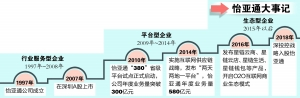 第一个十年从1997年算起,我们是做基础的供应链服务,就是采购执行、销售执行、进出口服务等,这时的核心是做服务,帮企业定制特色的个性化服务;怡亚通的优势是进入了全国保税物流园,同时投入上亿元建立了系统网络,规模从0做到300亿元。