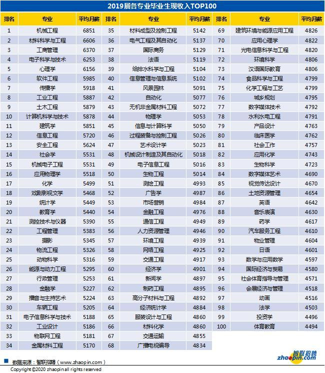 原标题:2020届毕业生平均起薪5290元 机械工程专业赚最多