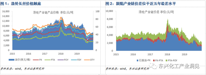 1.1受新冠疫情影响,涤纶长丝价格价差触底