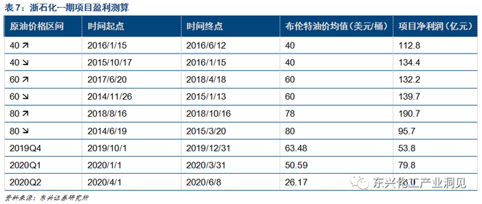 公司持有浙石化4000万吨/年炼化一体化项目20%股权。目前浙石化项目一期2000万吨/年炼化项目已于2019年底全面投产,项目二期2000万吨/年炼化项目也计划于今年年底达产,预计明年一季度将实现满负荷生产。届时公司权益炼油产能将达到800万吨/年。浙石化一期2020年上半年在新冠疫情席卷全球的不利局面下,半年度实现净利润44.9亿元,其中二季度单季度盈利28.9亿元,其强劲的盈利能力可见一斑。上半年浙石化共为公司贡献了8.98亿元的投资收益。作为近两年国内炼化行业最引人关注的项目之一,我们将从多个角度来对浙石化的价值进行讨论。