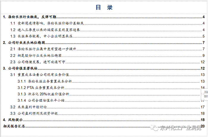 本文节选自东兴证券研究所已于2020年9月14日发布的《桐昆股份(601233):行业反转可期,公司价值显著低估》报告,具体分析内容(包括风险提示等)请详见报告。若因对报告的摘编产生歧义,应以完整报告内容为准。