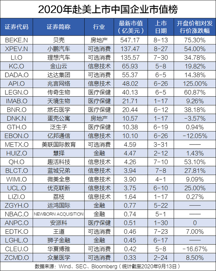 原标题:2020中概股赴美IPO图谱:首发募资猛增3倍,新经济公司上市井喷