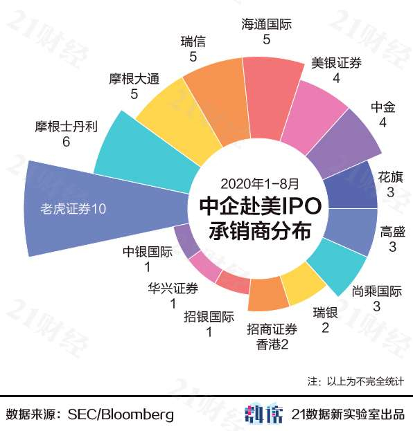 继去年以12宗中概股IPO承销单惊艳华尔街后,今年老虎证券有望蝉联承销中概股赴美上市方面的全球投行第一。SEC和Bloomberg数据显示,截至8月底,今年老虎证券承销10家中概股IPO,稳居投行之最,而同期摩根士丹利、摩根大通、瑞信等国际顶尖投行分别承销6家、5家、5家。