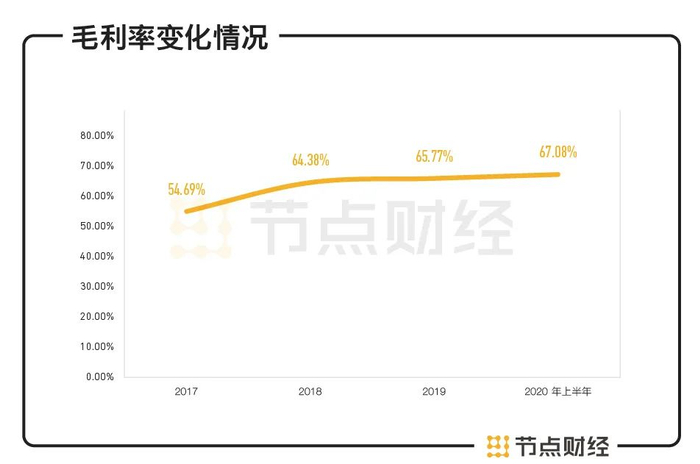 2017年至2020年6月,京东数科的毛利率分别为54.69%、64.38%、65.77%和67.08%,呈逐年上升趋势,相比之下,2020年上半年科创板上市公司平均毛利润为50.81%。可以说,在“高手如云”的科创板,即将上市的京东数科有着更强的盈利能力。