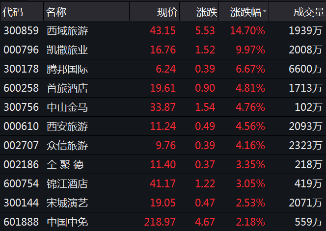 原标题:双节效应+经济内循环背景 旅游板块早盘表现强势