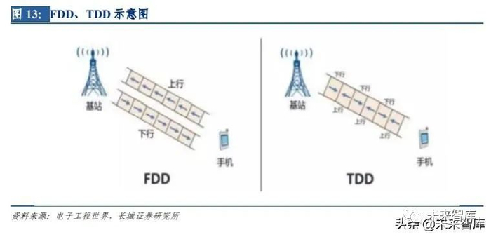 TDD 和 FDD 频谱协同使用,提升上行能力满足行业需求。TDD(Time Division Duplexing) 即发送和接收数据上使用相同的频率,上下行数据在发送的时候通过时间错开,可以避 免上下行干扰,如我国自主的 TD-SCDMA 技术。FDD(Frequency Division Duplexing)即 发送和接收数据上使用不同的频率,上行和下行频率之间有双工间隔,现在常见的 2G, 3G 制式的网络中,如 GSM,CDMA,WCDMA 使用 FDD 系统。传统的 TDD 系统设计聚焦 eMBB 需求,下行能力较强,但无法满足 5G 行业数字化进程带来的上行大带宽、低时延的需求。为此,华为联合行业伙伴推出端到端超级上行解决方案,即 TDD 和 FDD 频谱协同使用, 提升上行能力,降低时延。目前无线、核心网和终端已经端到端支持超级上行解决方案, 经运营商验证,上行速率最大可以提升 4 倍,时延可降低 30%。未来还可使 TDD 系统配合 全上行频段,达到 Gpbs 上行速率。