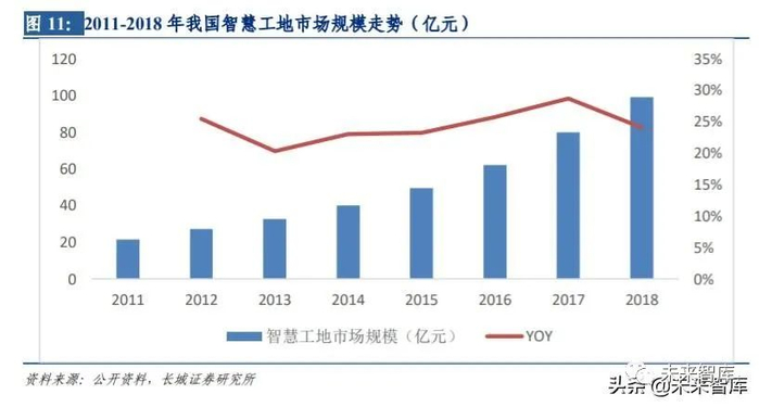 通信行业积极探索 5G 助力垂直行业复工复产新模式,5G+智慧工地、5G+远程签约、5G+ 智慧物流应运而生。2 月 22 日,工信部在召开的加快推进 5G 发展,做好信息通信业复工 复产电视电话会议上强调,加快推动“5G+工业互联网”融合应用,通信行业积极探索推 出 5G+智慧工地、远程签约、智慧物流等多种创新应用。其中,“5G 智慧工地”项目结合 5G+AI 双智慧,可完成远程巡查、远程解决技术难题等工作,可自主辨识烟火、未戴安全 帽等安全隐患并预警,并且辅吊人员通过 AI 眼镜可读取塔吊数据,出现异常会自动限制 起吊,真正实现全方位的智慧工地。2012 年-2018 年,智慧工地市场规模始终保持 20% 以上增速,2018 年市场规模达 99.1 亿元,同增 24.03%,未来在 5G 新技术加持下,智慧 工地有望迎来新一轮增长。此外,“5G 远程签约”将“屏对屏”的无纸化签约创意成功落 地,有效解决了疫情防控期间的企业复工困境;“5G 智慧物流”让消费者通过 5G 观看货 车实景运输成为可能,运输效率有望进一步提升。