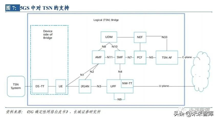 5G R16 多方面助力工业互联网实现 99.9999%可靠性、最快 5 毫秒以内的端到端时延等特 性。首先,R16 支持 5G 与 TSN(Time Sensitive Networking,时间敏感网络)集成。TSN 可基于标准以太网技术提供确定性服务,满足工业制造应用的高可靠、低时延需求,并 提供标准化统一的、经济的解决方案。5G 系统与 TSN 的集成基于 5G uRLLC 的低时延高可 靠能力,可满足 TSN 架构时间同步、低时延传输、高可靠性和资源管理四大严苛功能需 求,扩大潜在的工业互联网用例,比如工厂自动化、电网配电自动化等。其次,R16 增强 了 uRLLC。R16 通过 PDCCH 监视功能、支持多个 HARQ-ACK、无序 PUSCH 调度、UE 优先级 和多路复用等多个功能实现了 uRLLC 的增强,进一步增强了工业领域低时延、高可靠通 信特性。第三,非公共网络(NPN)增强数据安全性。NPN 是基于 3GPP 5G 系统架构的专 用网络,它将 5G 扩展到传统的公共移动网络之外,对于使能垂直行业数字化转型至关重要。NPN 包括独立部署的 SNPN(独立的非公共网络)和非独立部署的 PNI-NPN(公共网络 集成 NPN)。在独立部署模式下,垂直行业独立部署从基站到核心网到云平台的整个 5G 网络,与运营商的 5G 公网隔离,工厂或园区内的设备信息、控制面信令流量、用户面数 据流量安全将得到有效保证,可满足工业领域严苛的数据安全、低时延和高可靠需求。第四,NR 定位满足工业互联网精准定位需求。5G 在 R16 版本中增加了定位功能,利用 MIMO 多波束特性定义了基于到达角测量法(AoA)、蜂窝小区的信号往返时间(RTT)等室内定 位技术,可应用到工业 AGV、资产追踪等多个领域。未来 5G NR 无线将可能替代工厂内的 有线网络,让工业生产更加柔性化。综上,R16 版本针对工厂内部署 5G 网络可靠性、漫 游、时间敏感业务的硬性需求引入多项新技术,1 微秒同步精度可以避免设备因接受指令 顺序混淆而引发的混乱,实现工厂内网络各个节点的时间严格同步;99.9999%的可靠性、 最快 5 毫秒以内的端到端时延等特性,能够更好地满足工业互联网高可靠、实时性的要 求,助力工业互联网的发展。
