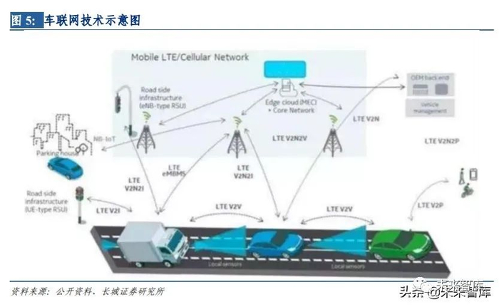 5G 为车联网发展带来机遇。5G 通信技术在低时延、高移动性车联网场景的应用,解决了 当前车联网发展面临的诸多问题,使 OBU 在高速移动下获得更好的性能。一方面在车内 网、车际网、车载移动互联网实现 V2X(X:车、路、行人及互联网等)信息交互,另一 方面实现 OBU、基站、移动终端、云服务器的互联互通。