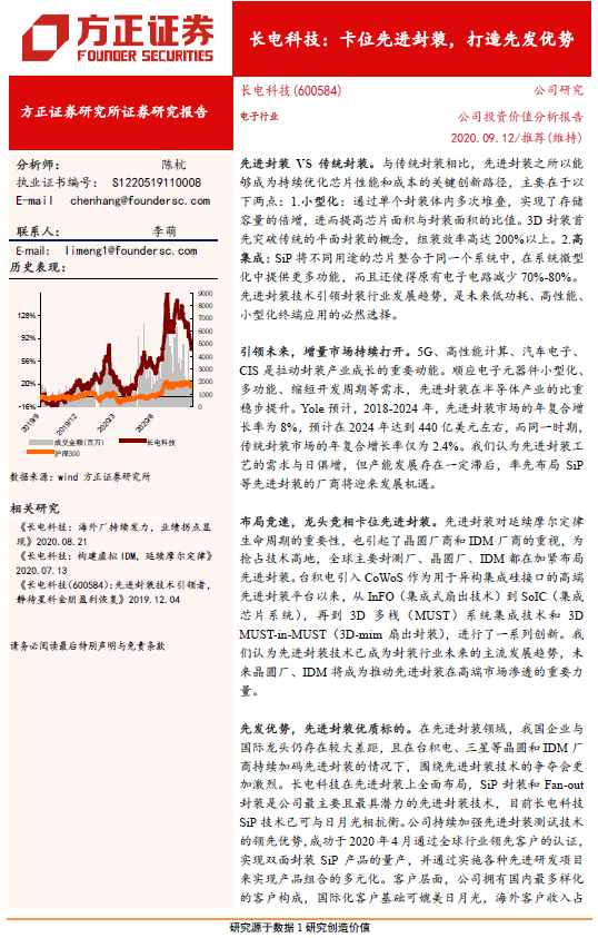本文来自方正证券研究所于2020年9月12日发布的报告《长电科技:卡位先进封装,打造先发优势》,欲了解具体内容,请阅读报告原文。陈杭S1220519110008,原文请联系李萌15202191589。