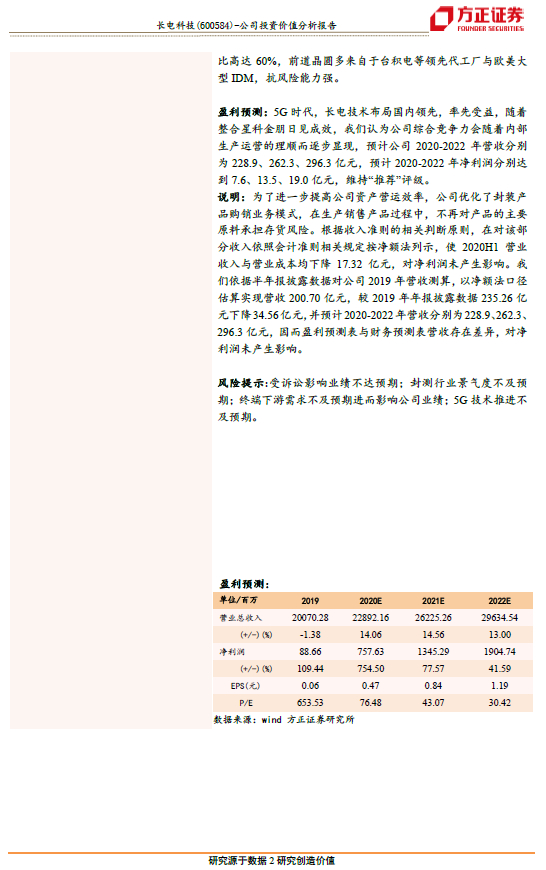 风险提示:受诉讼影响业绩不达预期;封测行业景气度不及预期;终端下游需求不及预期进而影响公司业绩;5G技术推进不及预期。