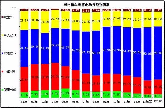 乘联会2013年12月产销数据分析显示,2004年飞度刚进入中国市场时,A0级轿车的市场份额高达30.5%;2005年之后,A0级轿车呈现波动下滑态势;2009年后持续下滑,从当时近20%的市场份额直跌到2020年前8个月的2.4%。