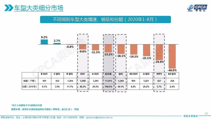 乘联会发布的2020年8月全国乘用车市场深度分析报告显示,2020年前8月,A0级轿车(小型车)销量同比下滑46%,是轿车及SUV各细分市场里下滑最大的一个细分市场,市场份额为2.4%。事实上,A0级轿车市场份额下降已持续多年。