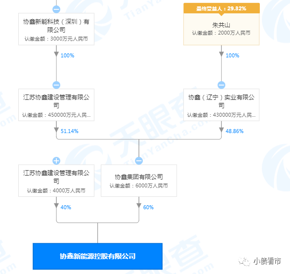 从股权结构上看,协鑫新能源的控股股东为协鑫集团,持股比例为60%,穿透后公司实际控制人为号称“民营电王”的朱共山。