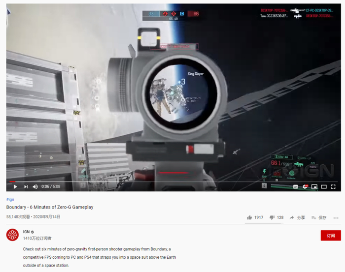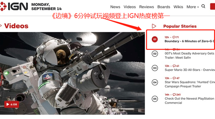 9月14日,IGN在自己的官网、油管账号上同时发布了《边境》的试玩视频,这是一款国产零重力太空射击FPS游戏。目前,这个6分钟的试玩视频已经登上IGN热度榜第一的位置,该视频为玩家们展示了游戏包括团队竞技模式、设施夺取模式、轨道肃清模式和快速冲突模式四个游戏模式,以及伏特加、盾卫等六个外观性能各异的角色,一系列精彩的游戏内容,让不少国外游戏爱好者参与到讨论之中。