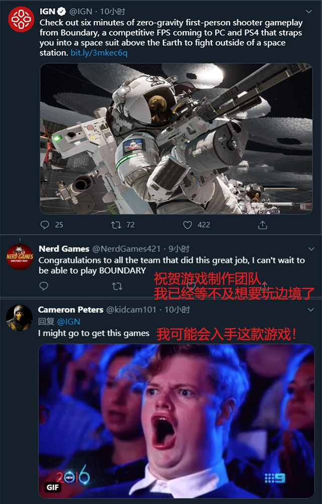 看完6分钟的试玩视频,游戏真实还原的航天员服和空间轨道站结构,以及在太空中的多种对战模式,给人留下了深刻的印象,关于太空对战的幻想,已经快要实现了。而国外的游戏爱好者也留下了不少对于游戏的赞美,待《边境》这款太空零重力FPS上线之时,我们可以期待一下国产FPS游戏的崛起。
