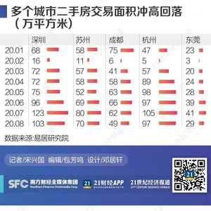易居研究院的数据也显示,8月份,深圳、成都等多个热点城市的二手房交易量出现了冲高回落。具体来看,深圳的二手房交易面积从7月的123万平方米,下降到103万;成都从62万下降到49万平方米,东莞则从41万下降到29万平方米。另外,杭州、苏州、厦门、大连等热点城市,交易量同样回落。