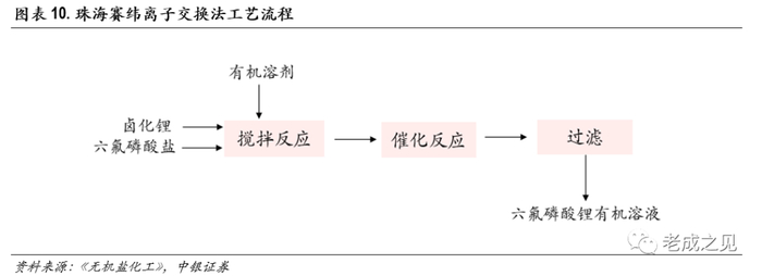 离子交换法仅用于实验室。离子交换法是将六氟磷酸盐和含锂化合物在有机溶剂中发生离子交换反应从而生成六氟磷酸锂,珠海赛纬具备离子交换法制备六氟磷酸锂的技术。