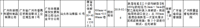 其中,由惠州市盛广达实业有限公司生产、广东华南通商贸发展有限公司揭阳榕城分公司销售的深圳筷三聚氰胺单体迁移量(4%乙酸)不符合食品相关产品安全国家标准规定。该产品规格型号为M603,生产日期为2018年8月3日,不合格项目为三聚氰胺单体迁移量(4%乙酸),检验结果为4.2mg/kg,标准值为≤2.5mg/kg,检验机构为广东省潮州市质量计量监督检测所。