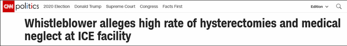 众议院议长佩洛西(Nancy Pelosi)在一份声明中说:“如果举报所描述的骇人听闻情况,包括对弱势移民妇女进行大规模子宫切除的指控属实,这是对人权令人震惊的践踏……国会和美国民众需要知道,为什么以及在什么情况下,会有如此多的妇女,在据报不知情的情况下,被迫接受这种极具侵犯性和改变人生的程序。”