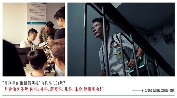 崔帆是一名基层社区的全科医生,在湖州市的吴兴区月河飞英街道社区卫生服务中心当副主任,在社区工作9年了。社区的常住人口加流动人口有10万人。他有一个女儿,1岁7个月大,丈母娘在家里帮着带孩子。崔帆一天的日常工作是类似这样的:跑了3个社区指导复工复学,给5位老人测血糖,接诊1位孕妇,为一群孩子进行体检。在新冠疫情防控时,随时会接到消息,半夜凌晨一个电话就要全副武装去量体温。有一次发现了一个来自武汉的发热患者,很不配合,他就自己帮患者交了钱,在医院检查,等了一个通宵,上午8点多出报告,正常,他这才放心地继续上班去了……他每次分身乏术的时候,就想要是每家有一个医生大管家就好了。