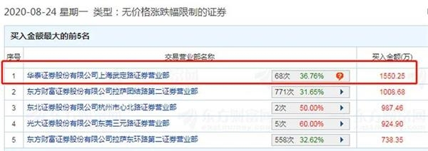 有意思的是,华泰证券上海武定路营业部似乎很“钟情”次新股,8月24日还现身另一只次新股蓝盾光电的龙虎榜,高居买一席位,买入1550.25万元。