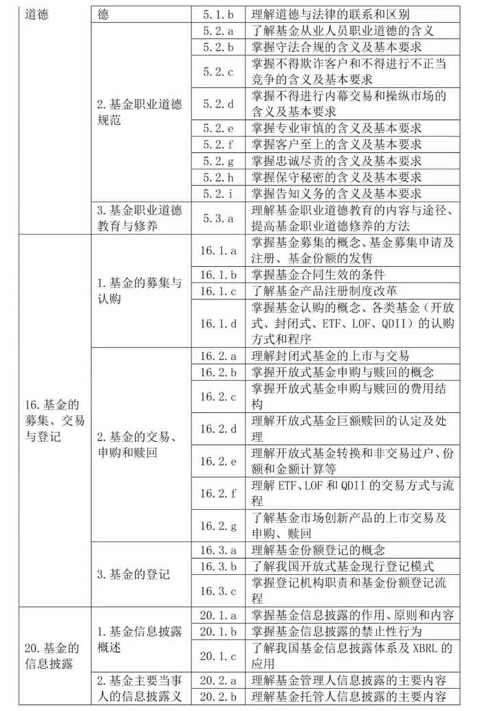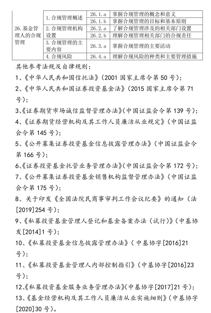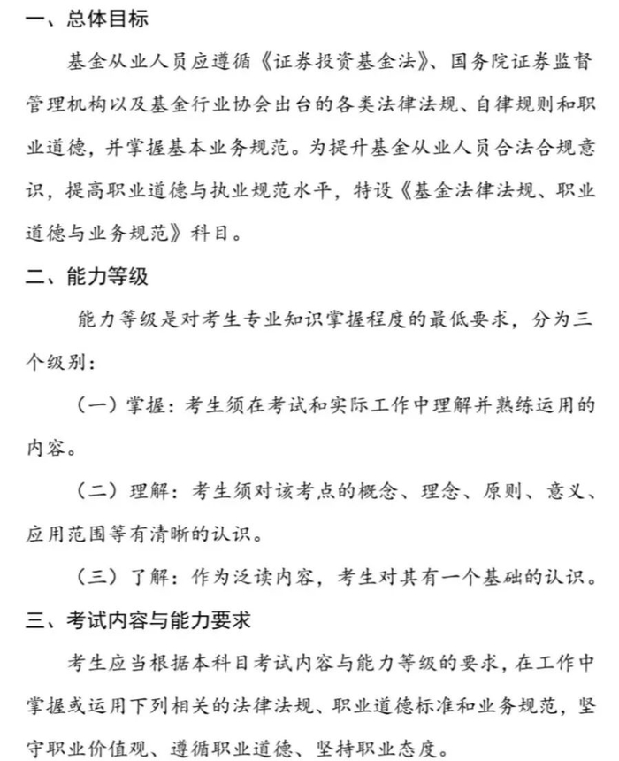 《基金法律法规、职业道德与业务规范考试大纲