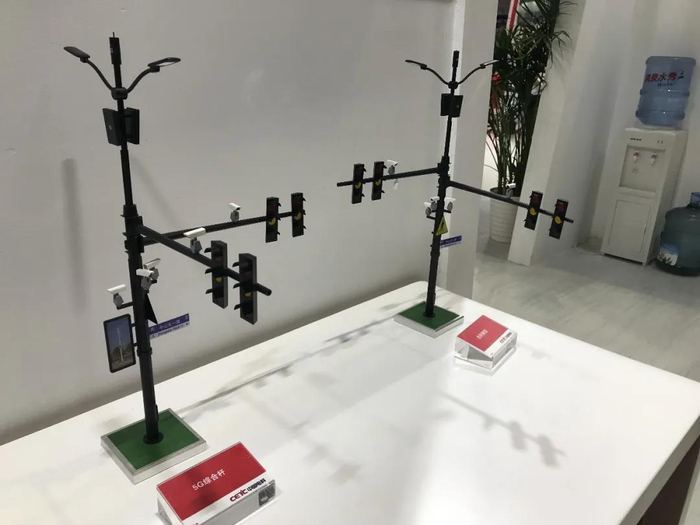 在中电科的展台,记者看到的5G综合杆模型分为主杆、副杆、横臂、灯臂四大结构部件,为各类城市管理与服务设施提供了物理搭载平台,主杆顶端有一个黑色的5G微基站。