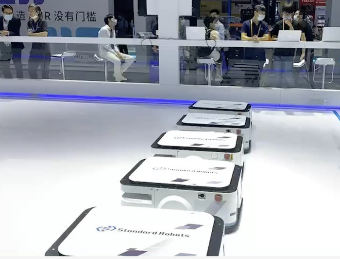 能够灵活移动的物流机器人是斯坦德本次工博会上的新品,它们叫AMR600,是一款标准化工业级移动机器人,能为客户处理多达600公斤的有效载荷,以取代人力来提高工作容量和效率。