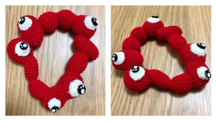 社交媒体上还有各种围绕“光辉君”的二度创作。有人用拟人、夸张的手法为它绘制同人图,或是把它制作成像素游戏里的怪物,强调突显它的猎奇色彩;也有创作者朝可爱的方向改造,把“光辉君”的形象用在料理和手工编织作品上,展现它生动活泼的一面。